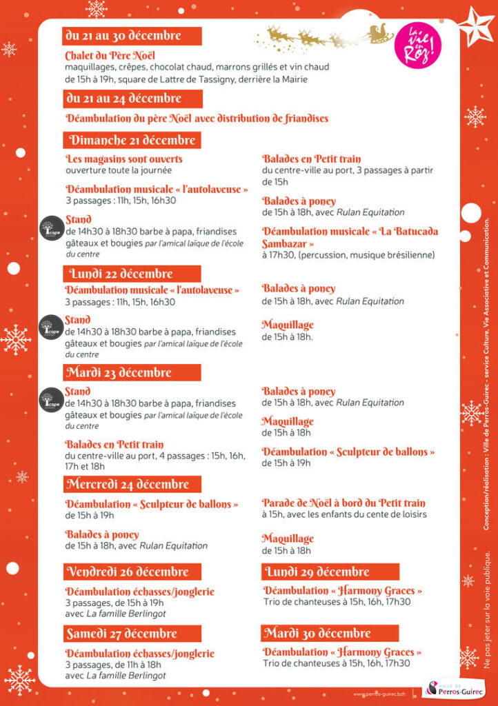 Le centre-ville de Perros-Guirec s’anime pendant les vacances de Noël, sur la période du 21 au 30 décembre 2025 … de quoi profiter de jolis moments en famille dans l’esprit de Noël et des fêtes de fin d’année !