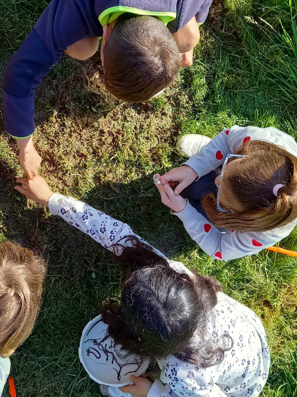 Les enfants partent en balade dans le sous-bois, ou bien à la découverte des vers des terre.