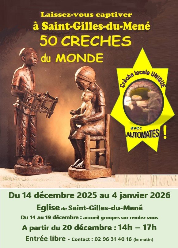 L’église de Saint-Gilles-du-Méné accueille une exposition de crèches du monde, jusqu’au 4 janvier 2026.