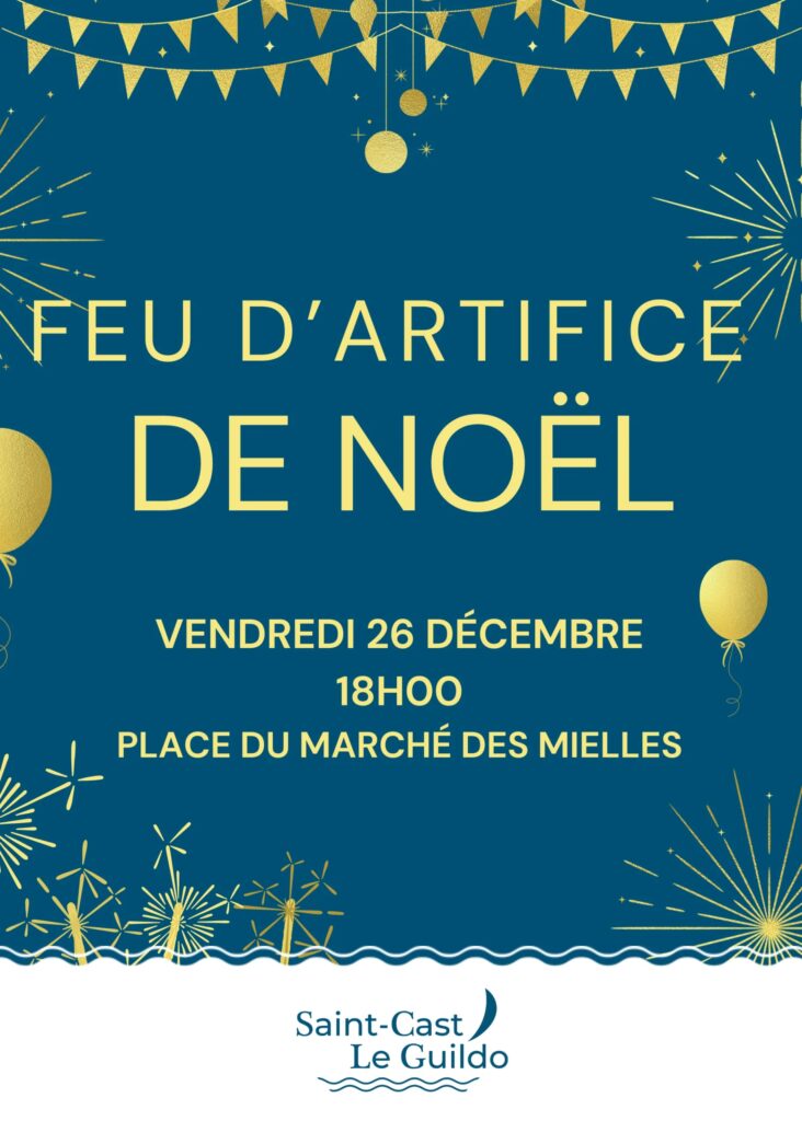 La ville de Saint-Cast Le Guildo vous donne rendez-vous places du marché des Mielles le 26 décembre 2025 à 18h pour assister au feu d’artifice de Noël.