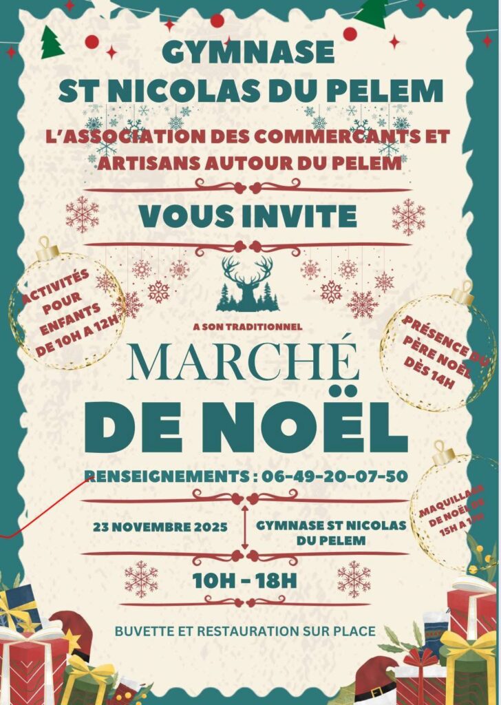 L’association des commerçants et artisans autour de Saint-Nicolas-du-Pélem organise un marché de Noël dimanche 23 novembre au gymnase, de 10h à 18h.