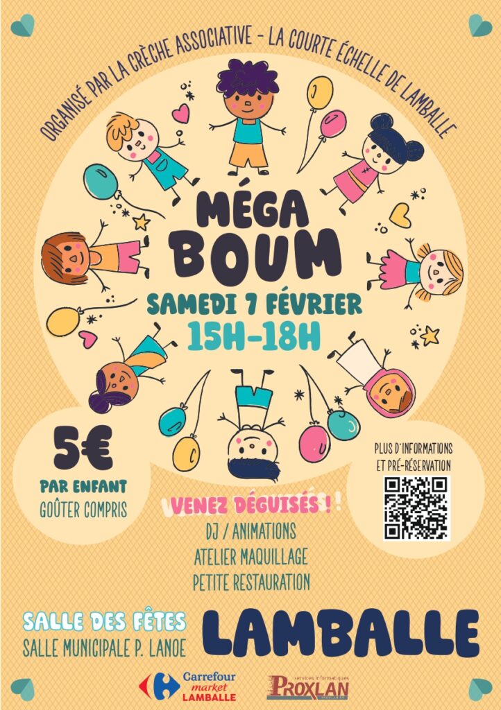 La crèche associative La courte échelle de Lamballe vous propose une méga boum le samedi 7 février 2026, de 15h à 18h à la salle des fêtes.