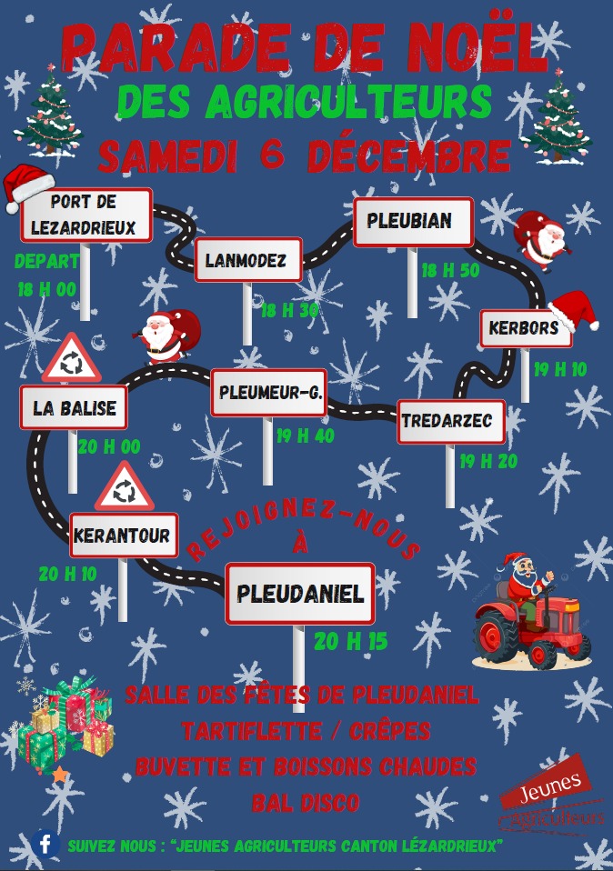 A l’occasion des fêtes de fin d’année, les jeunes agriculteurs du canton de Lézardrieux vous proposent d’assister à leur parade de tracteurs décorés et illuminés.