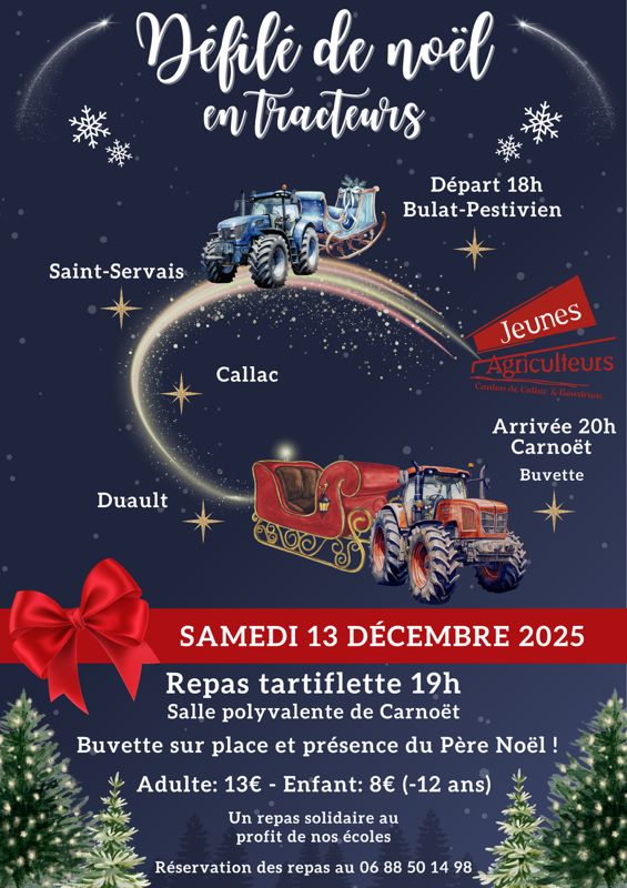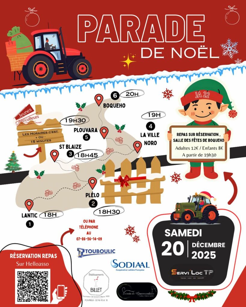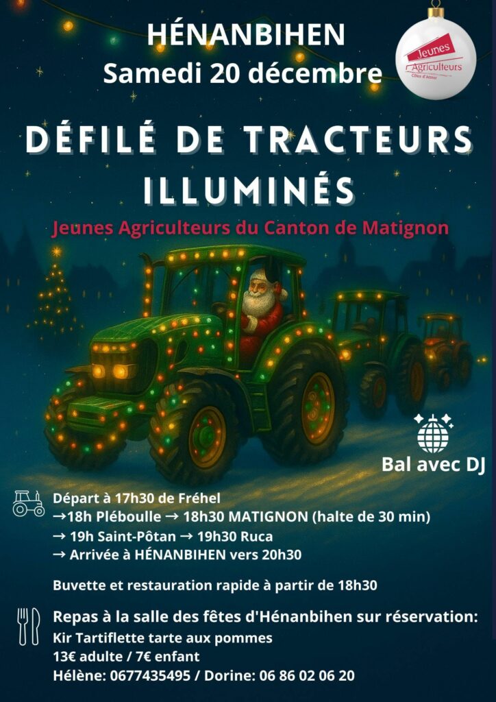 En cette fin d’année, les Jeunes Agriculteurs des Côtes d’Armor organisent des défilés de tracteurs illuminés sur plusieurs cantons du département, en parallèle d’autres animations festives ou marchés de Noël. Venez découvrir leurs décorations et profiter des diverses animations !