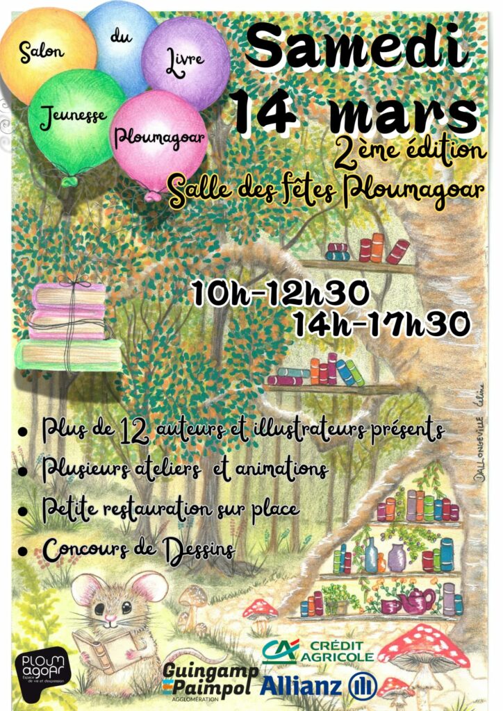 L’amicale laïque de Ploumagoar organise un salon du livre jeunesse le samedi 14 mars 2026 à la salle des fêtes de Ploumagoar.